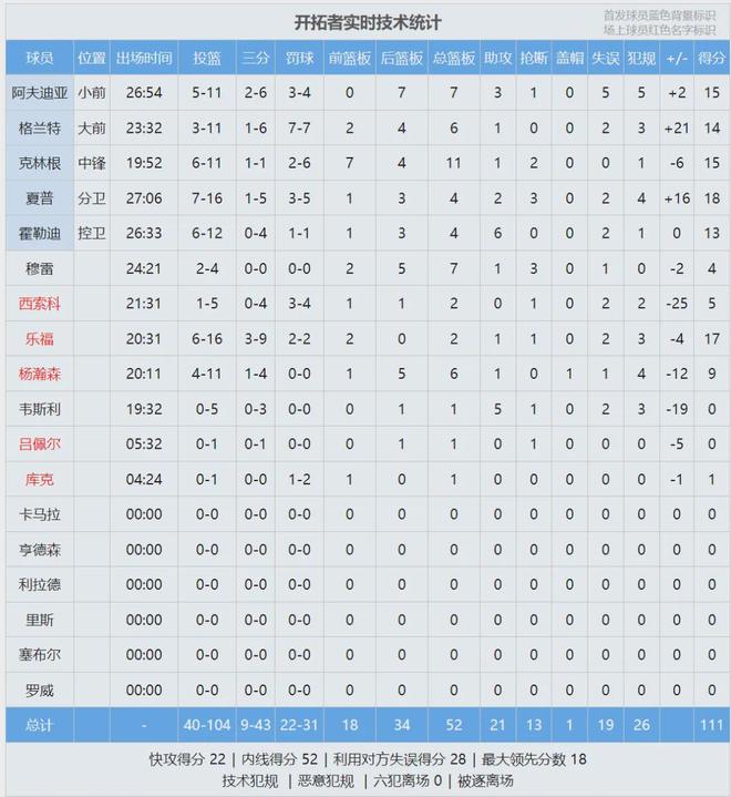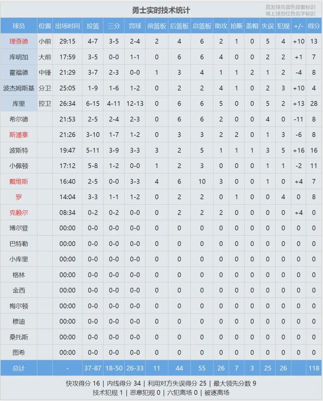 全场结束,开拓者111-118被勇士大逆转。库里15投6中,三分11中4,罚球13中12,拿下28分6板5助。NBA实施“投篮后不能打手”的新规,库里史诗级加强!杨瀚森打了20分钟,11投4中得到9分6板1助1失误4犯规,正负值-12。