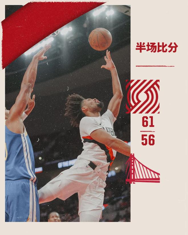 第二节开拓者最多领先到18分,但勇士下起三分雨,单节三分球12中7,分差迅速缩小。库明加抱怨裁判,直接被驱逐。半场打完,开拓者61-56领先5分。杨瀚森上半场出战8分39秒,投篮4中2,三分1中0,得到4分6篮板1犯规。