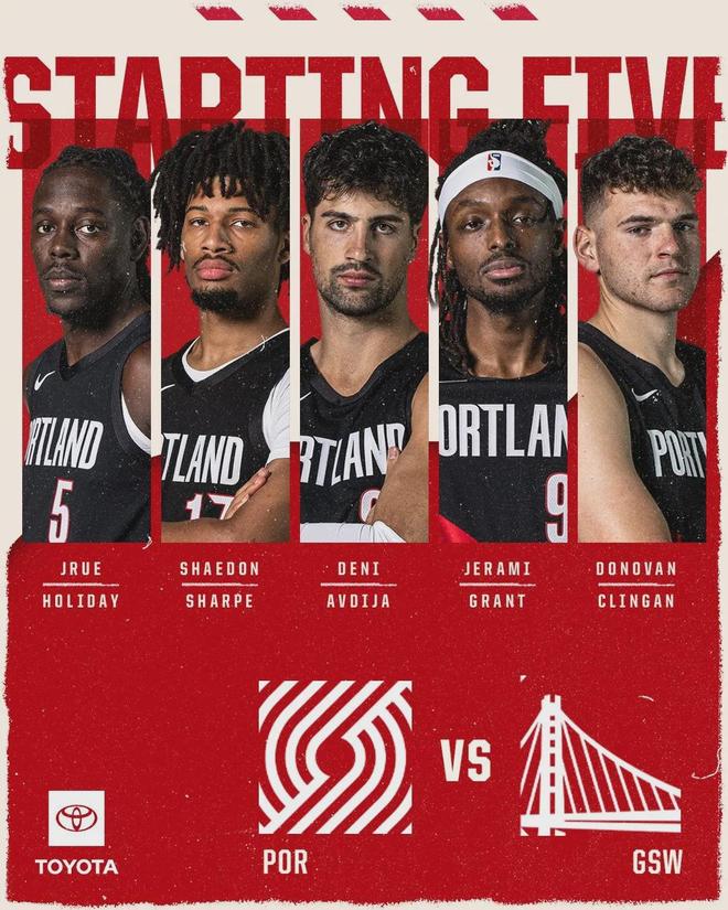 今天杨瀚森依然替补出战,格兰特重回首发阵容:霍勒迪、阿夫迪亚、夏普、格兰特、克林根。勇士这边,巴特勒(脚踝轻微扭伤)和追梦格林不打,56号秀威尔-理查德进入首发阵容:库里、波杰、理查德、库明加、霍福德。